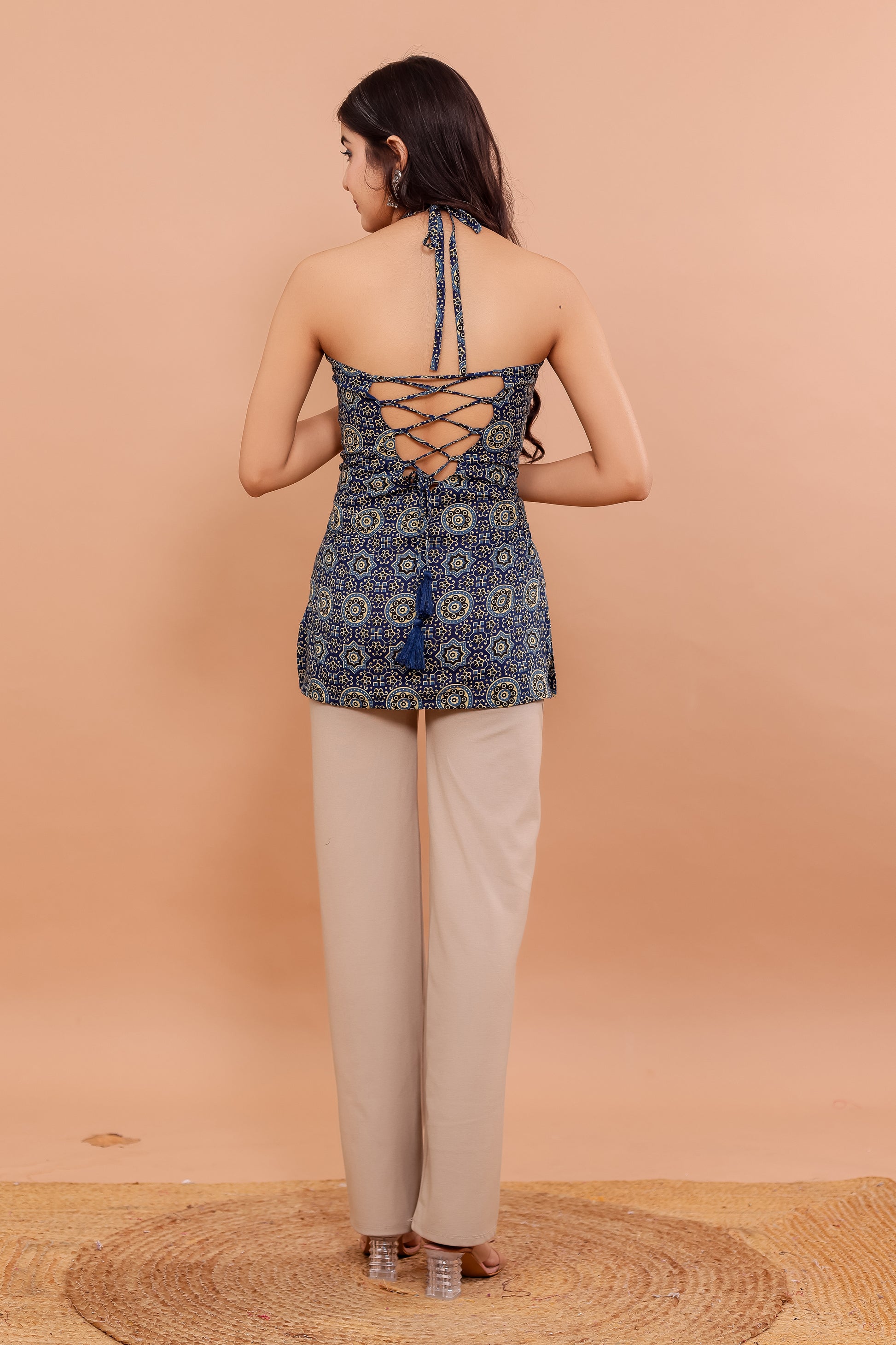 Saanjh Indigo Halter Neck Kurti